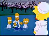 While Homer and Marge go off to a spa, Grampa is told to watch Maggie, and in school, Bart is discovered to have lice, and Lisa is hit in the head with a ball causing her to bite her tongue. It appears to Principal Skinner that Bart and Lisa are the subject of neglect. Skinner calls Child Welfare, and the kids are taken into foster care by the Flanders'. Homer and Marge plead the case with the court. The judge orders them to take course in child welfare, to get their children back. Flanders discovers that Bart, Lisa and Maggie haven't been baptized and tries to get Rev. Lovejoy to perform it, but he wont, so Flanders goes to do it himself. Homer and Marge pass the course, and just they discover Flanders' plan. Rushing to the Springfield River, Homer manages to stop his kids from being Baptized.
