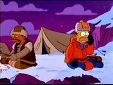 When Homer cant run a short distance at a church picnic, Homer feels embarrassed, and starts to work out at night at a local gym. After two months, Homer is built some muscle. While at the gym, two Powersauce Executives approach Homer to climb the Murderhorn, the tallest mountain in Springfield. Homer accepts and as he climbs he realizes that the peak is unclimbable. Giving up, Homer creates a crack that collapses the rest of the mountain, making where Homer stands the top. Homer celebrates and then uses C. W. McAllister's frozen corpse as a sled down the mountain.
