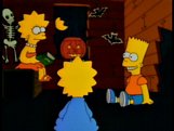 BAD DREAM HOUSE: Bart tells Lisa and Maggie a story, of when The Simpsons move into a new home, only soon to learn that the place is haunted. A spirit moves books and flies them at Lisa, strangles Bart with a lamp wire, a voice tells them to get out however, Homer suggests that they sleep on it. During the night however the voice causes Homer, Bart, Lisa and Maggie to try and kill their family with an axe and knifes. Marge tells the house that they'll have to live together so it'll have to get used to it. Exploring the options, it self-destructs.