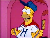 On a company outing to the Ballpark, Homer intends to go crazy and let lose, but his hopes are ruined when Mr. Burns and Smithers sit next to him. But to Homer's amazement, Mr. Burns buys Homer several beer's to show good employee relationships. Homer is soon drunk, and with the Springfield Isotopes down by three runs and to win need a Grand Slam,Homer gets on the dugout and dances which rallies the team to victory.Homer is given a job as the teams Mascot, the team goes on to many more victories. Homer is then called up to Capital City. There the crowd doesn't cheer for him and the family returns to Springfield.