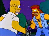 When in a fifties dinner, Homer and Marge win a dancing contest, and Homer wins a Motorcycle which he doesn't know how to ride. Homer gets Bart to teach him, and he's confident enough to ride it. He does so to church, drop Bart off at school and even the bedroom. Homer, Moe, Lenny, Carl and Flanders start a motorcycle gang called the Hell Satan's. Another gang, also the Hell Satan's, bursts into the Simpson house and takes over, trashing the place. After a while, they leave, but they take Marge with them. Marge teaches them how to get jobs, and not to use violence. Homer chases after them. He and their leader, Meathook face each other in the Circle of Death, in a sword fight, Homer wins, and takes Marge back to Springfield.