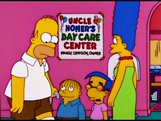 Homer starts a day care center (under Marge's ownership), "Uncle Homer's Day Care Center", to entertain himself, making Bart and Lisa feel like outcasts. The daycare center is wildly successful, and Homer earns a nomination for the "Good Guy Awards" ceremony. For the ceremony, they make a video of Homer's accomplishments, but Bart and Lisa splice in footage to prove that Homer is an incompetent father and "beer-drinking meanie", using home movies of him. The audience were outraged and Homer angrily strangles Bart on stage. Everyone in the audience becomes more outraged by how Homer strangles Bart, and decided to prevent their kids from being with him. Homer escapes from the ceremony with all the kids on a van, until Chief Wiggum stops him. After going through three mistrials, Homer is sorry for neglecting Bart and Lisa, on whom he now decides to focus his love (don't forget Maggie).