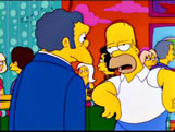 Homer and his bar-buddies Lenny, Carl and Barney find that they do not fit in with the new, affluent crowd, and miss their old tavern experience. Homer decides to convert his garage into a new tavern for himself and his friends. Meanwhile, Moe realizes that he does not fit in with his new clientèle either, and leaves to find Homer. Arriving at the Simpsons’ home, he finds that the new garage bar has quickly become quite popular, and even has R.E.M. playing. When confronted by Moe with the fact that it is illegal to operate a bar in a private residence, Homer claims that it is in fact a hunting club, citing a law book. Moe consults the book and determines that the club must engage in the sport of hunting. Homer decides that he will hunt for a turkey for Thanksgiving dinner, despite Lisa’s objections.