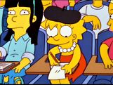 Lisa is able to keep up her double life, attending a poetry reading by former Poet Laureate Robert Pinsky (voiced by Pinsky himself) at night and attending her second grade class during the day. While going to Springfield University, she is tracked by Milhouse, Martin, and Database. At a lecture about Itchy & Scratchy cartoons, they blow Lisa’s cover.