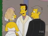 After it is called off, Homer and Marge try to get Skinner and Krabappel to be engaged again, but it is halted by Homer and Marge's own marriage problems. Mrs. Krabappel returns a wedding gift to the Comic Book Guy, and she finds him to be an interesting man. Homer gets Skinner to serenade Krabappel using a band made up of Bart, Milhouse, and Martin, but that fails when he learns that the Comic Book Guy and Krabappel are in love. The family visits the Bi-Mon-Sci-Fi-Con to confront Comic Book Guy, who proposes to marry Krabappel after the family sees Futurama creator Matt Groening. Skinner, dressed up as Catwoman (who he thought was Catman), battles the Comic Book Guy. Krabappel interrupts their fight to declare that she has no interest in either man. Both seem to accept her decision, though Skinner is still upset. Later, at the Simpson house, Homer asks Marge to remarry him, which is done in the style of a mock Klingon wedding.