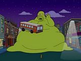 MARRIED TO THE BLOB: When a shooting star crash lands in the Simpsons back yard and opens to reveal a green goo, Homer eats it. During the night, Homer eats everything in the house, but is still hungry, Bart comes down to see what's going on, but Homer attempts to eat him. Homer leaves the house and sees Teenagers camping out, they have a BBQ sauce fight and one is pushed into the fire, quickly Homer picks up and eats him whole. The next day at Octoberfest, Homer eats many of the fat Germans, and goes on a rampage through Springfield eating all the fat people. Dr. Phil McGraw (voiced by himself) tries to stop Homer but he too is eaten, Homer and Marge come up with a plan to turn Homer's Cannibalism into a positive by eating tricking and eating homeless people in Springfield.