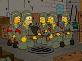 Marge forbids Bart to join the army after signing up. Marge sends Homer down to the recruitment center to have Bart's contract cancelled, he instead signs up. Homer leaves, and after testing, he is assigned to help test out some of the army's weapons. The Colonel (voiced by Keither Sutherland) follows Homer throughout the town and invades Springfield looking for Homer. When Marge calls everyone up, they dump all their liquor into the towns water and get the army drunk. Marge takes on the Colonel and he surrenders.