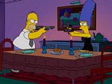 MR AND MRS. SIMPSON: In a parody of Mr. and Mrs. Smith, Homer and Marge are attending what appears to be marriage counselling. Where they tell the story of Homer going to the bathroom and is really a secret agent hired to kill Kent Brockman. When Homer goes off to kill him, Kent is killed by a woman before Homer got the chance. The woman turned out to be Marge. Homer races Home and challenges Marge. Each pulling guns on each other. A Huge gunfight between the two ensues wrecking much of the Dining room, Hall and Living Room. When Chief Wiggum shows up with a complaint from Flanders, Marge shoots him with a Crossbow, and they agree to do their assassinations together.