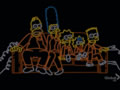 The family run in to find a dead body on their floor. The Police arrive, and the family flee on the couch driven by Homer. They are caught and placed in a police lineup. There, they are identified as the murderers instead of the Flanders's and the Hibbert's. They are jailed, and then electrocuted. When electrocuted they scream and light up.