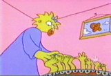 Bart and Lisa hover over Maggie's crib, wondering what she's thinking. Maggie sees them first as demons, and then as defenceless little infants who she towers over and tickles.
