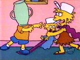 Bart, Lisa and Maggie role-play a Save-the-Earth game. Lisa is space pilot Lisui, Maggie is her energetic sidekick Maggeena, and Bart is Bartron, the evil robot from Mars gone berserk, who is really Bart with a vase stuck on his head.