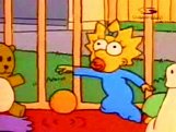 Maggie survives the fall, flies out of the water and into a carnival, picks up some balloons and flies to the Simpson house where just as Homer and Marge arrive, she lands in her play pen.