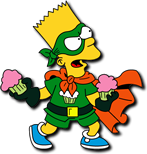 Bartman is Bart's most used undercover vigilante name. Bartman has participated in several missions, including saving Springfield from a Nuclear Explsion with help from Radioactive Man, solved the reason behind a wave of Bartman hate with help from Lisa the Conjourer and Maggeena. Overthrown the Evil Bart of another Dimention with help from Stretch Dude and Cupcake Kid, and also lead an assault on Doctor Collosus after he turned Springfield into 10 year olds with help from Mature Lass, The Silencer, Mini-Mom, Commander Cool, The Laughter, The Amazing Lenny and Kid Blackula
