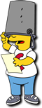 When conducting an experiment, Homer and Barney had to open all the doors and windows for ventilation only to discover that the TV had been stolen and a riddle left behind, to avoid punishment, and to go undercover to solve the case, he donned a bucket on his head. He couldn't see while wearing it, nor could Homer solve the case. Years later, the riddle would finally be solved by Bartman, The Special Kid's son.