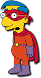 After an Explosion at the Nuclear Plant, Milhouse gains a superpower of being able to screech at a high frequency to deafen his enemies. When Bartman needs his help, The Scarlet Whimpernel ignores it and intends to go solo, but later discovers that fighting crime alone is lonely so he returns to Bartman wishing to be his sidekick again.