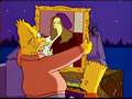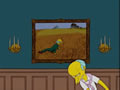 As Bart introduces the final segment of the Halloween Episode he passes several more paintings, one of them is a parody of The Death of Marat feauturing Homer with a piece of paper that says "Duff Chips Pork" stating his wishlist.