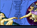 When Homer and Bart come to retreive a letter that Homer wrote for Mr. Burns in anger now regretting it, Homer goes to the post office where there is a mural featuring a parody of the creation of Adam.
