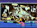 When Comic Book Guy self publishes his Everyman comic book, Bart comments about how he could be so creative, at the same time, Nelson is showing his own creativity by spray painting a parody of Guernica. Real World Location: Museo Reina Sofia, Madrid