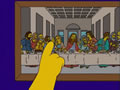 When Homer discovers that the rapture is coming, he uses the Last Supper painting to help him calculate when. After first, he indicates that there was only 12 people there, and gets the date wrong, but when he counts it up again, he counts to 13 because Jesus was there also, this time getting the date correct, and because no one believed him, he's the only person who is sent to heaven, talking to God, he manages to return to his family on Earth after seeing how terrible things are.