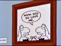 As Bart is cleaning the house, he moves his cloth from the wall to a smudge the paint in a copy of American Gothic while he's not looking. As he continues to scrub the paint is totally removed to reveal the message "If you can read this, you scrubed too hard" and is signed by Grant Wood.