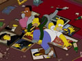 When Mr. Burns forces his employees to work for his 4th July Picnic, Homer, Lenny and Carl are disgruntled and break into his wine cellar and get drunk. While drunk they move into a room filled with priceless arworks and artifacts and break everything. When the Police arrive, Homer, Lenny and Carl are all playing Twister with a wine bottle and various paintings. Homer has his foot on the Mona Lisa.