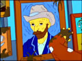 When Ranier Wolfcastle announces that he won the contest, the contestants riot, as a Van Gogh exibit shows up, Homer defaces a painting of Van Gogh's with pudding to feature his own Five O'Clock Shadow, after that, it is quicky tipped over and explodes.