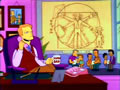 While in a museum with Marge for inspiration for his work, Homer has a dream of various artworks attacking him. The Vitruvian Man attacks Homer several times.