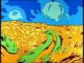 When Bart is sent to France on the Foreign Exchange Program, his escort, Cesar drives him through several French based paintings. Van Gogh's Wheatfield with Crows is the second they pass through. As they drive by, the crows within the painting fly away.